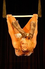 Trapez zu erklimmen. Der jungen Trapezkünstlerin gelingt mit Präzision
