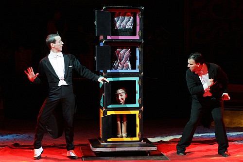 junge, attraktive Artisten präsentieren Illusionen der 20er Jahre, die