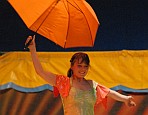 sympathisch choreographierten Jonglagen. Er wirbelt Bälle, Keulen